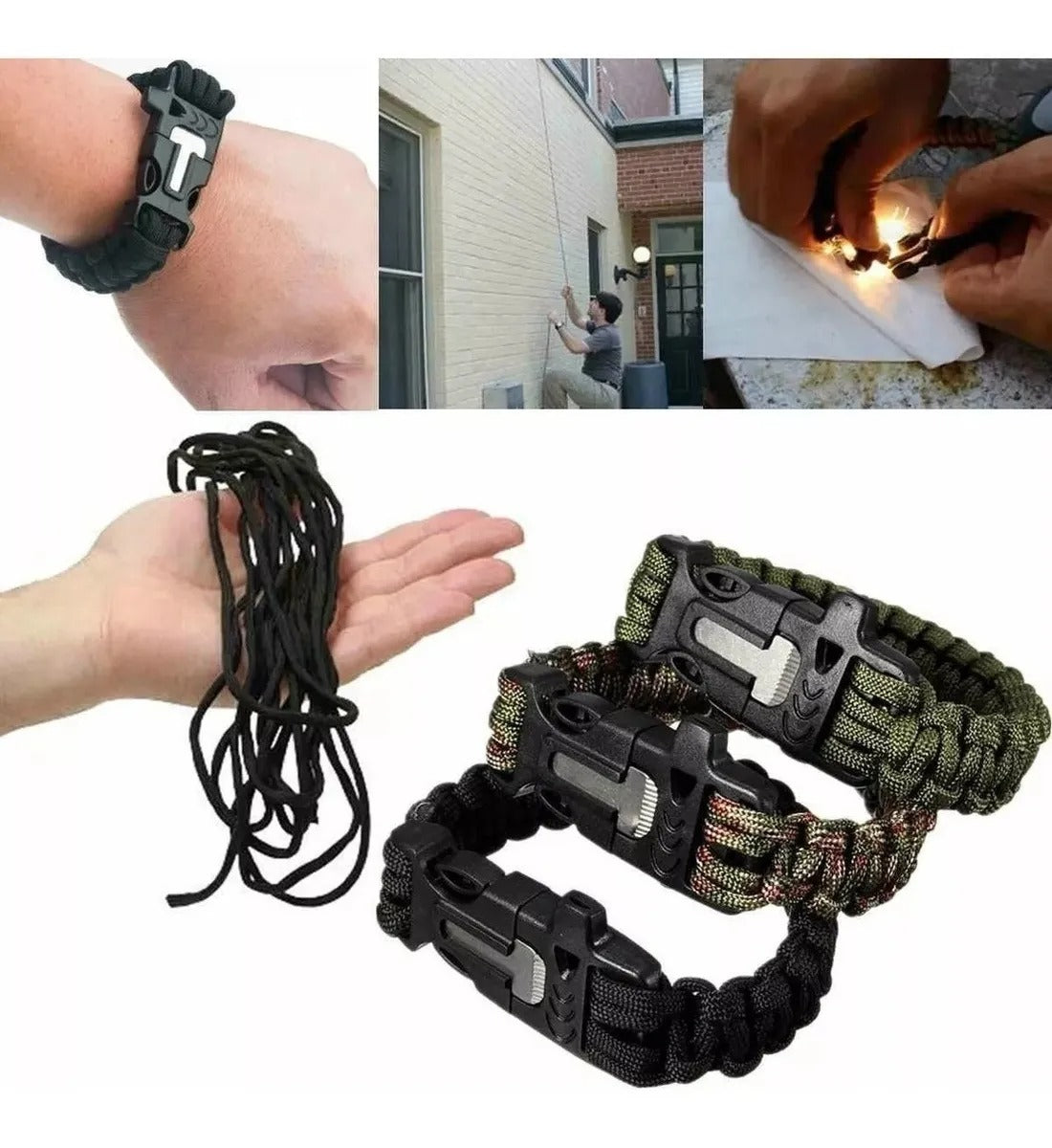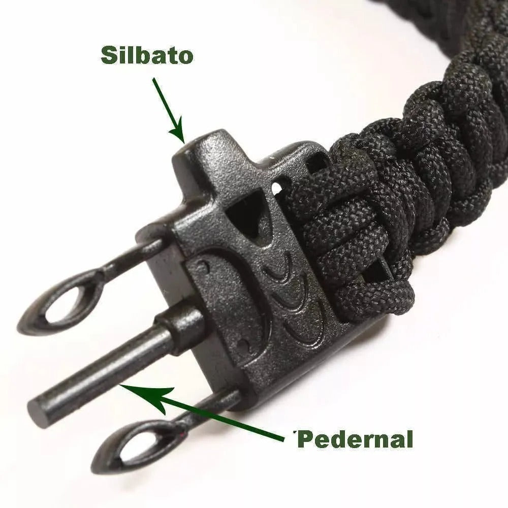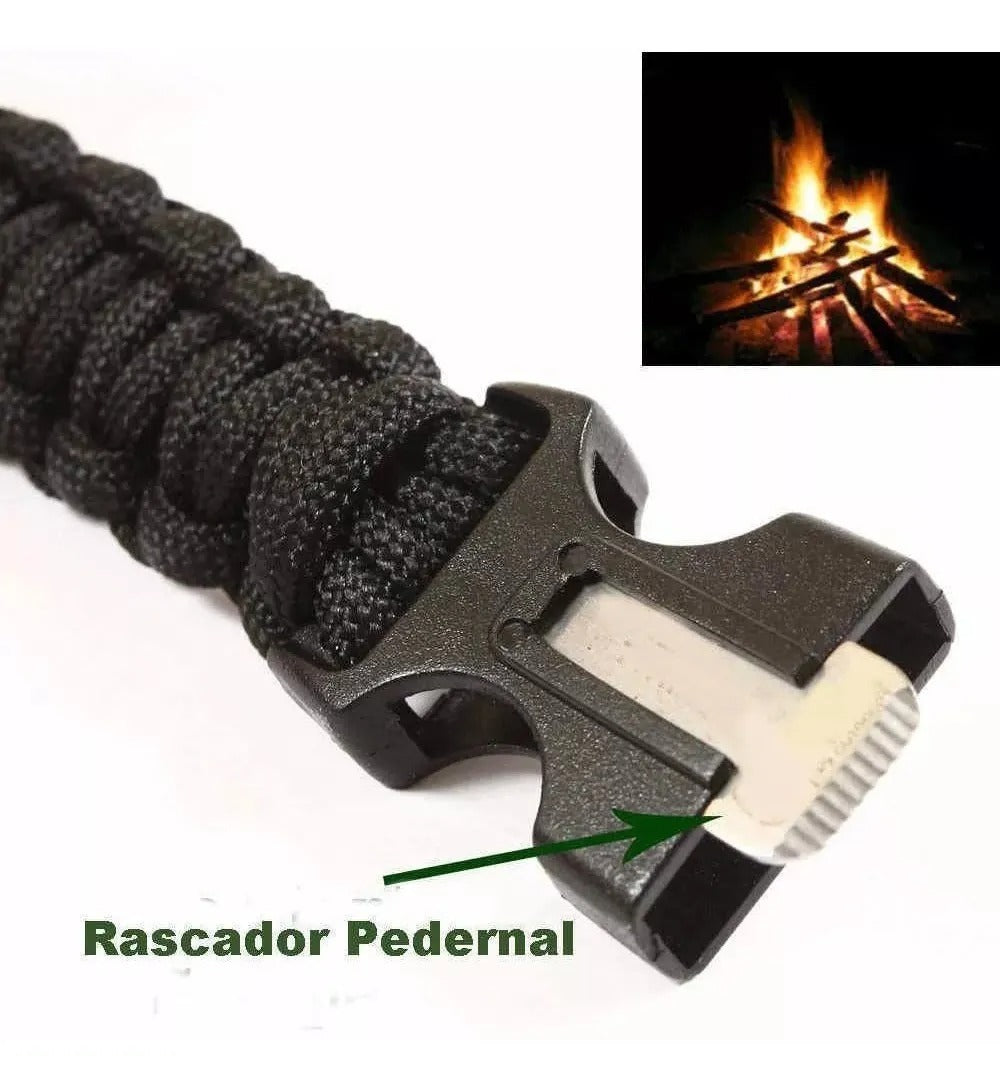 🧭 Además, este combo incluye una pulsera paracord resistente con pedernal y silbato, un complemento práctico que puede ser útil en aventuras, camping o situaciones de emergencia.