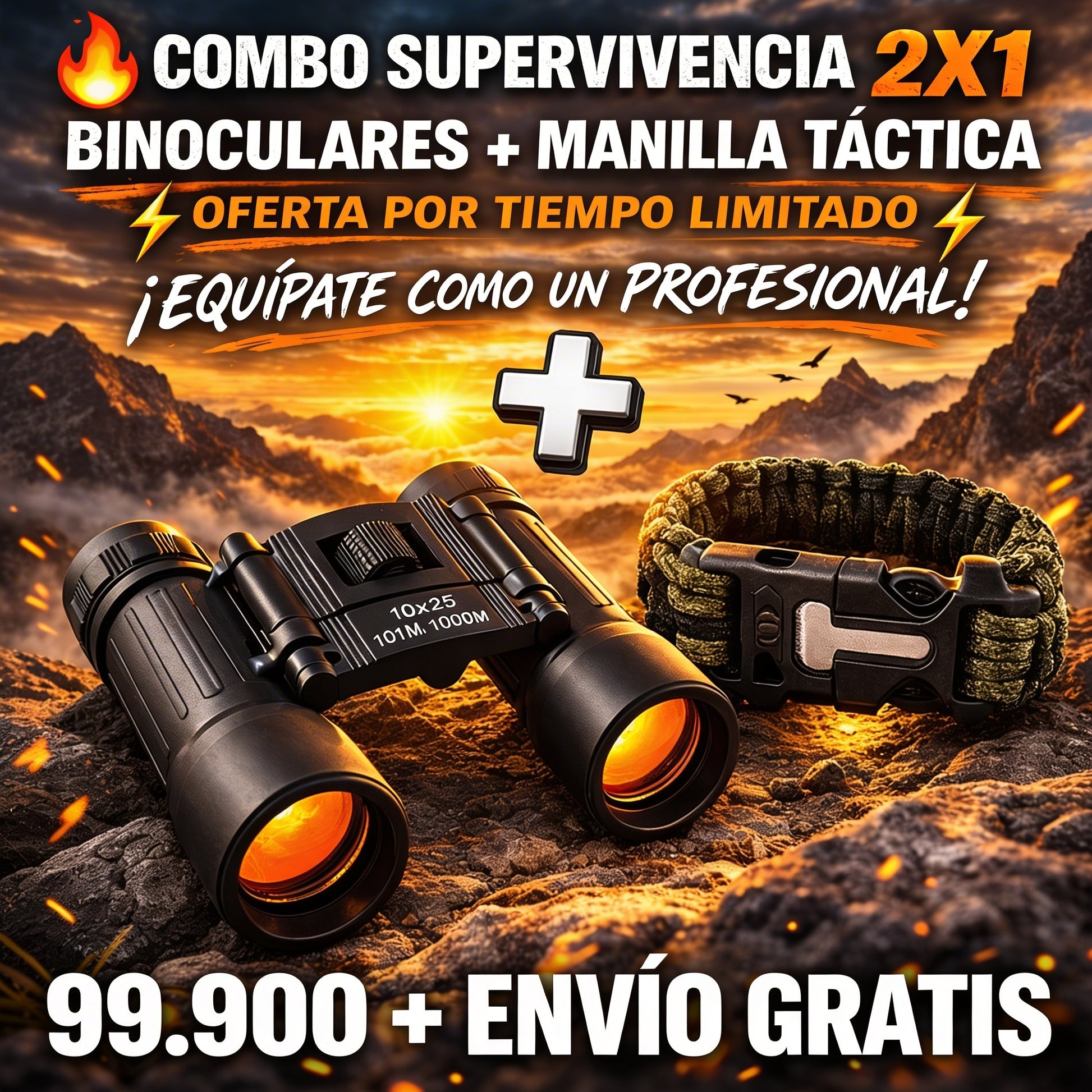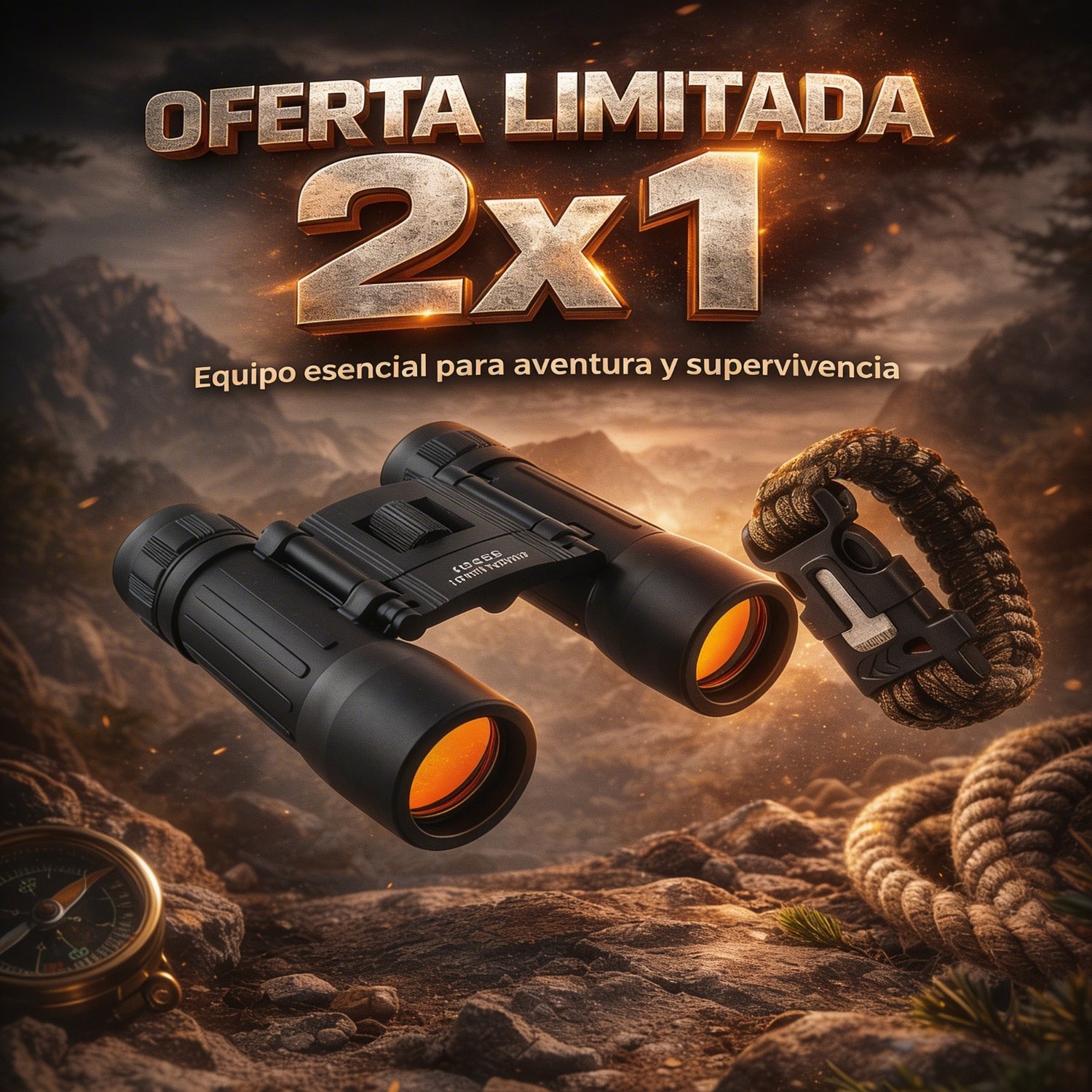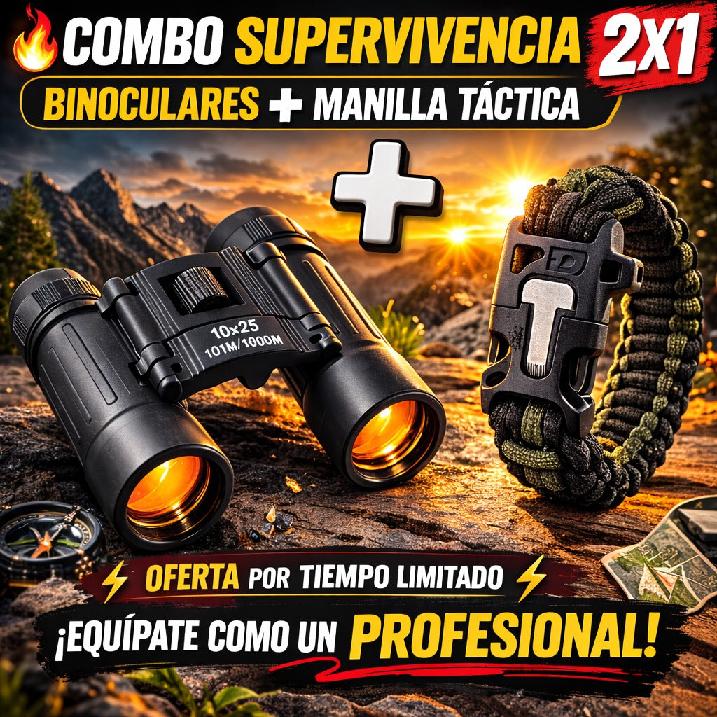🔭 Lleva hoy tu Combo Aventura con binoculares de largo alcance y pulsera paracord de supervivencia y disfruta de mejor visión, seguridad y herramientas útiles para tus aventuras.